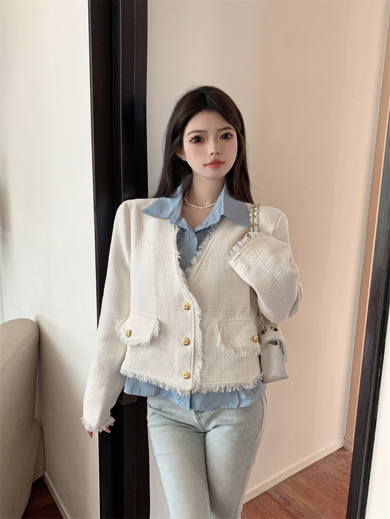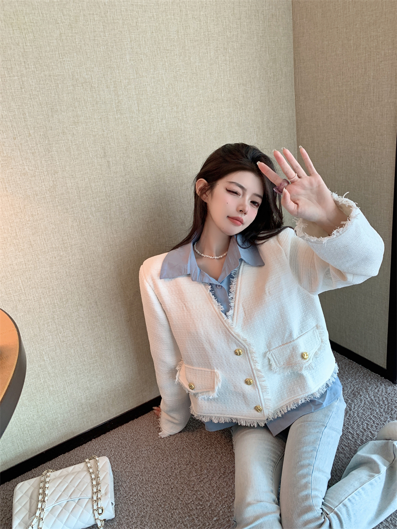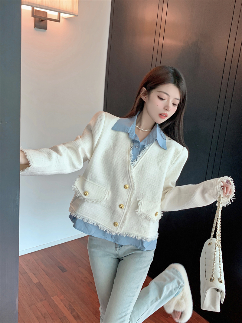 2025 한국 디자인 스타일 POLO 칼라 페이크 레이어드 패치워크