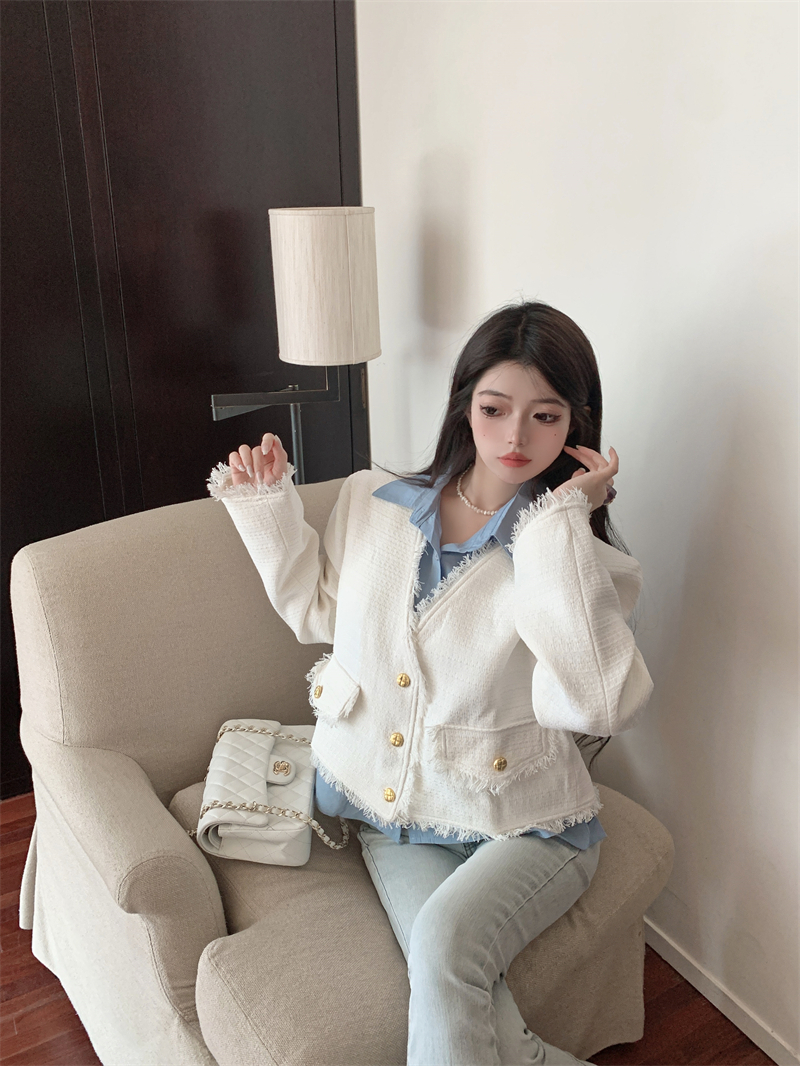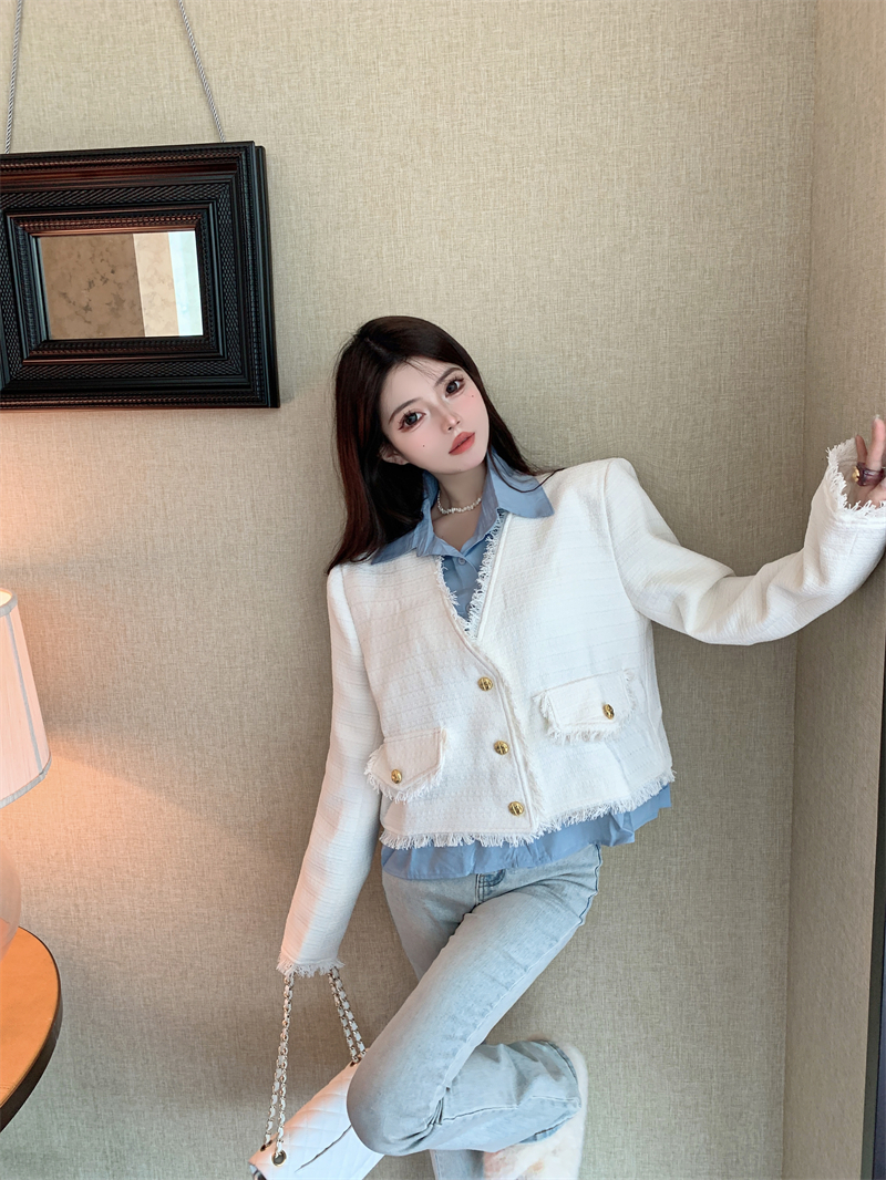 데님 여성 코트 체크무늬 패치워크 재킷 2025 가을 뉴 디자인
