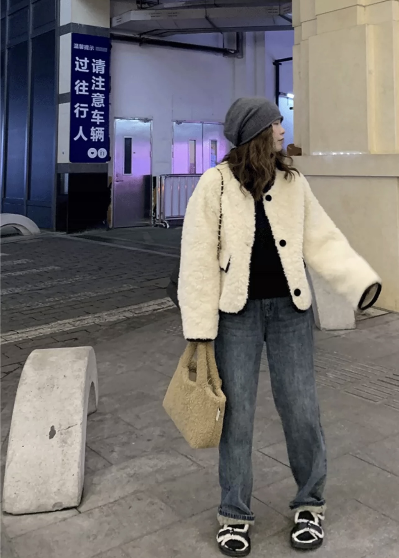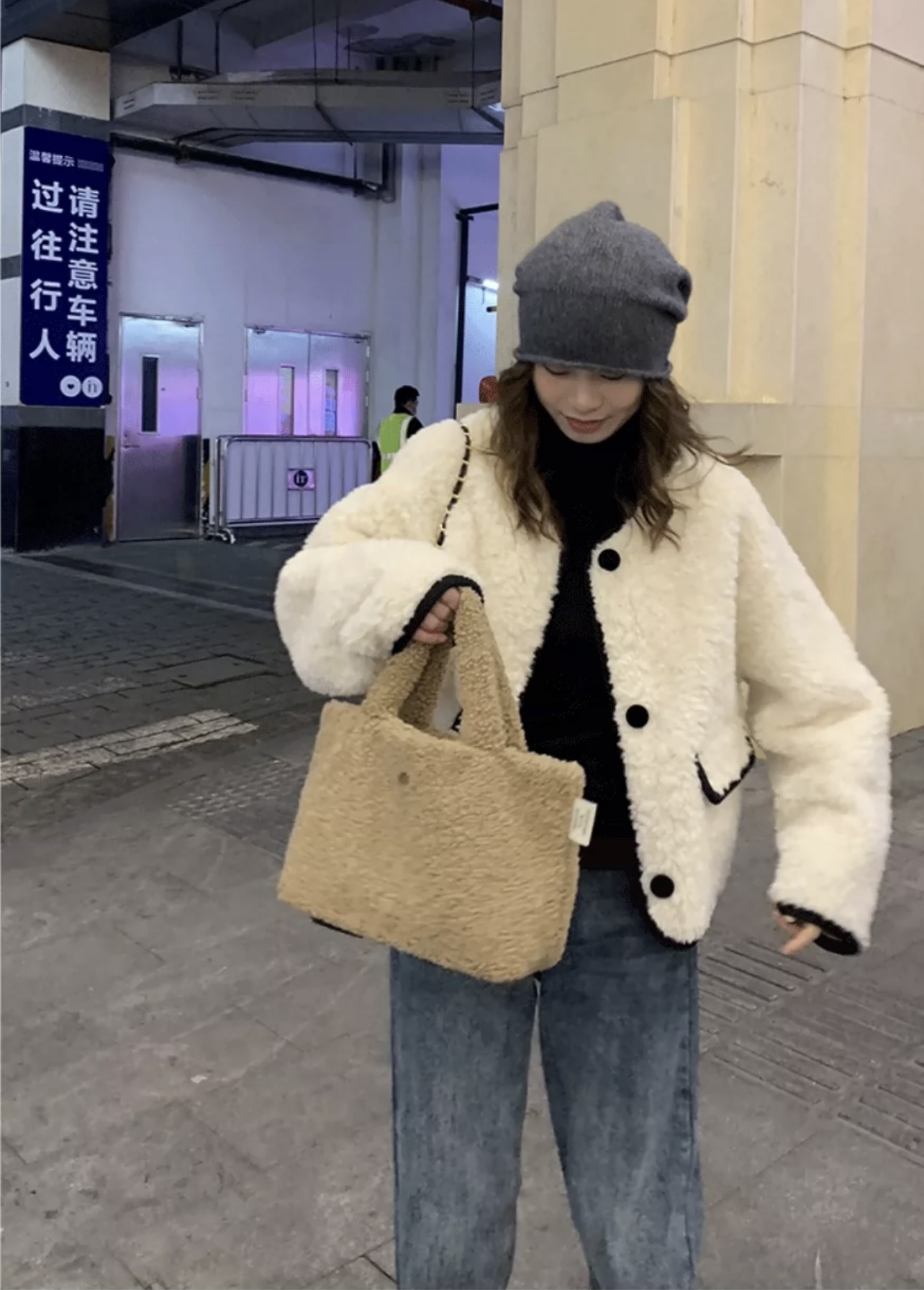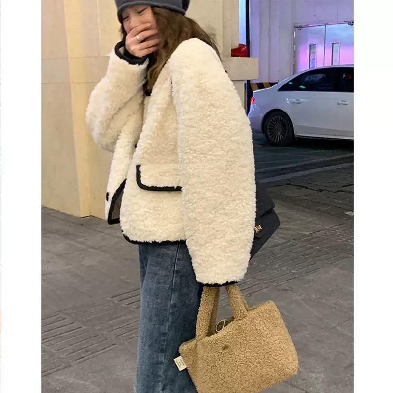 양털 작은 여성 코트 토끼털 플러시 환경 보호 모피 가을 겨울철