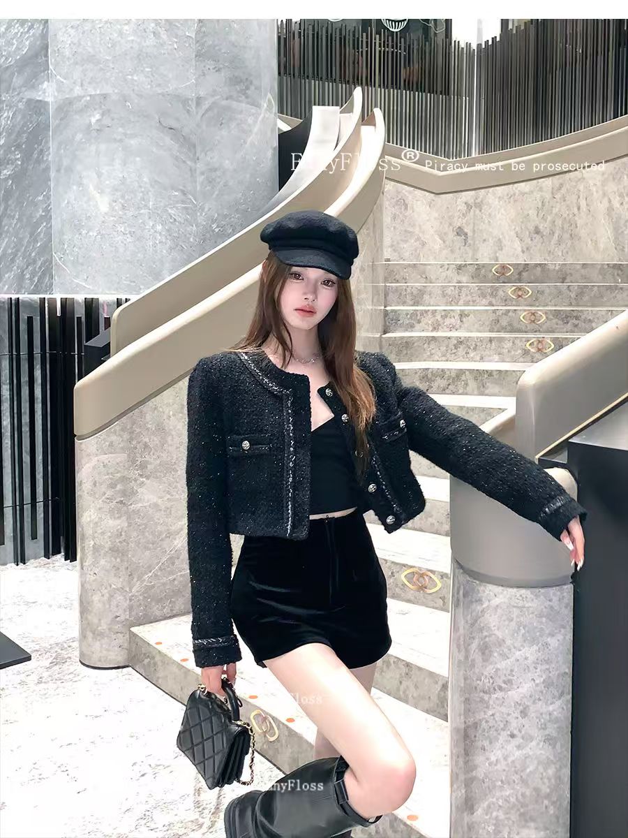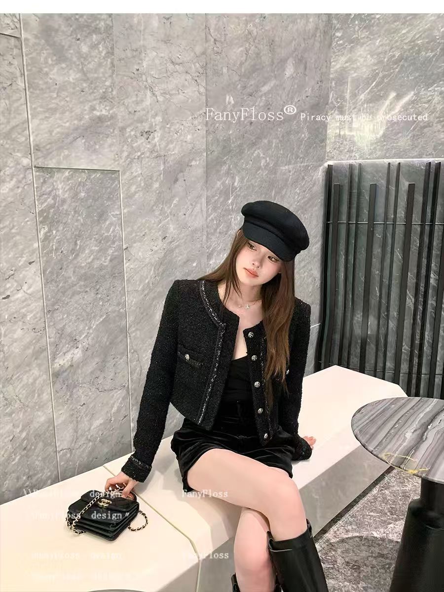 풍부한 골드 롱 코트 샤넬 스타일 재킷
