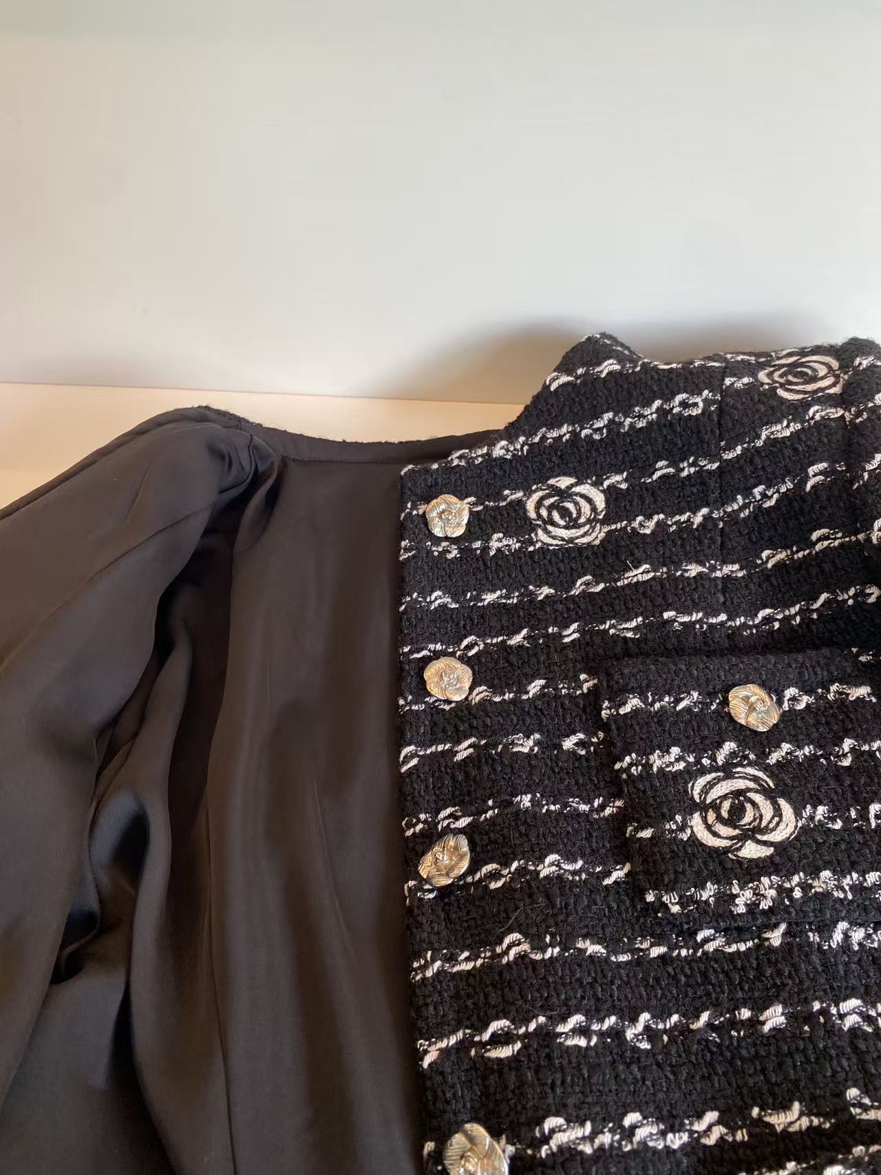 럭셔리 천 골드 작은 샤넬 스타일 짧은 외투 플러스 면