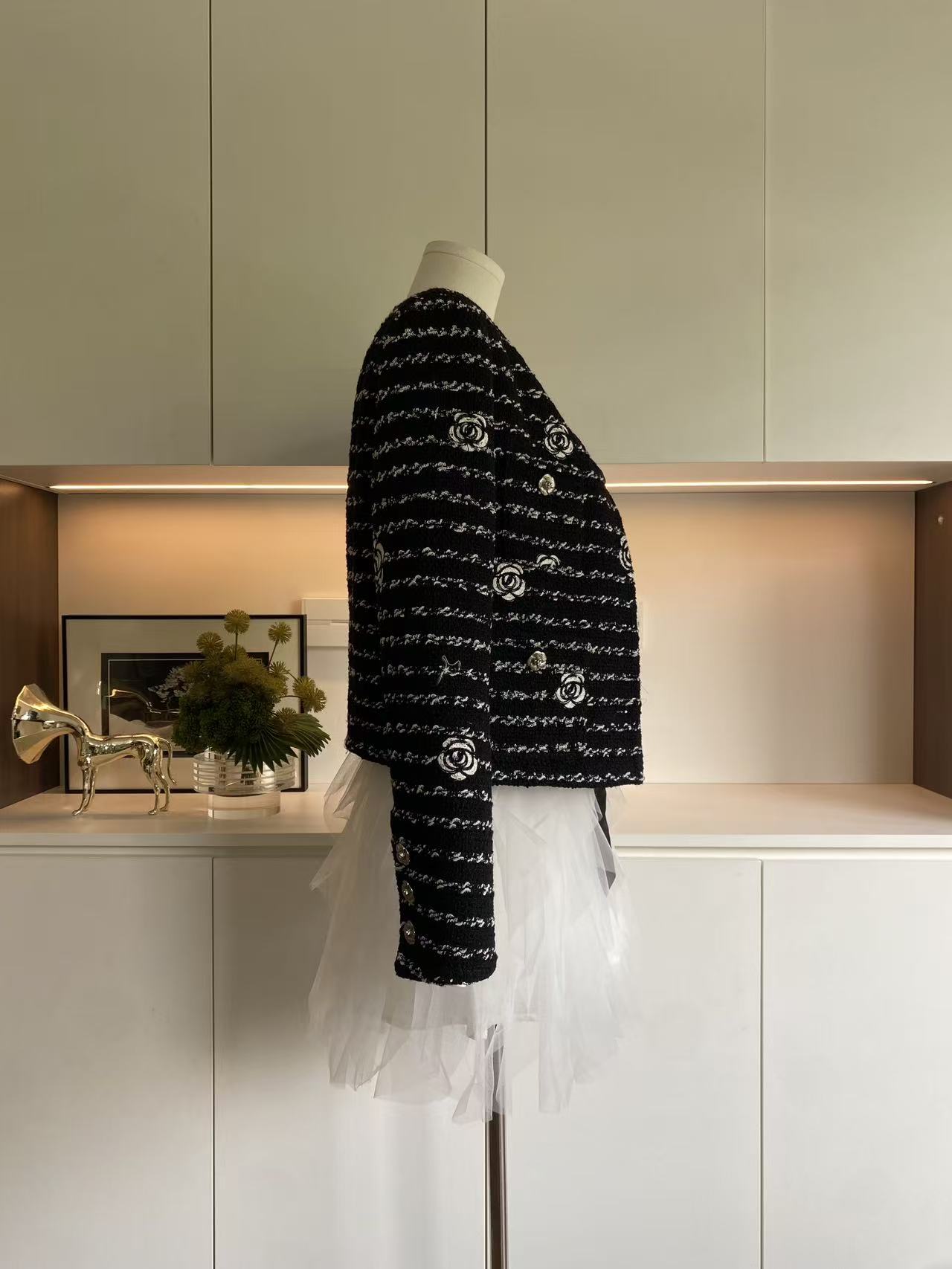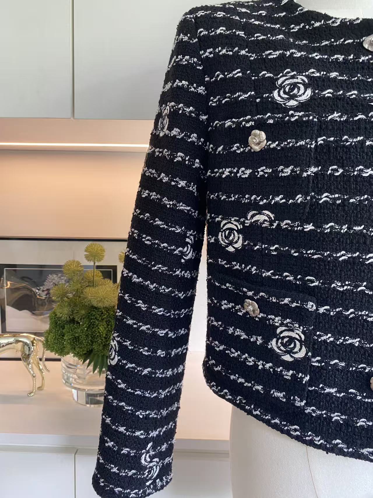 블랙 동백 자수 재킷