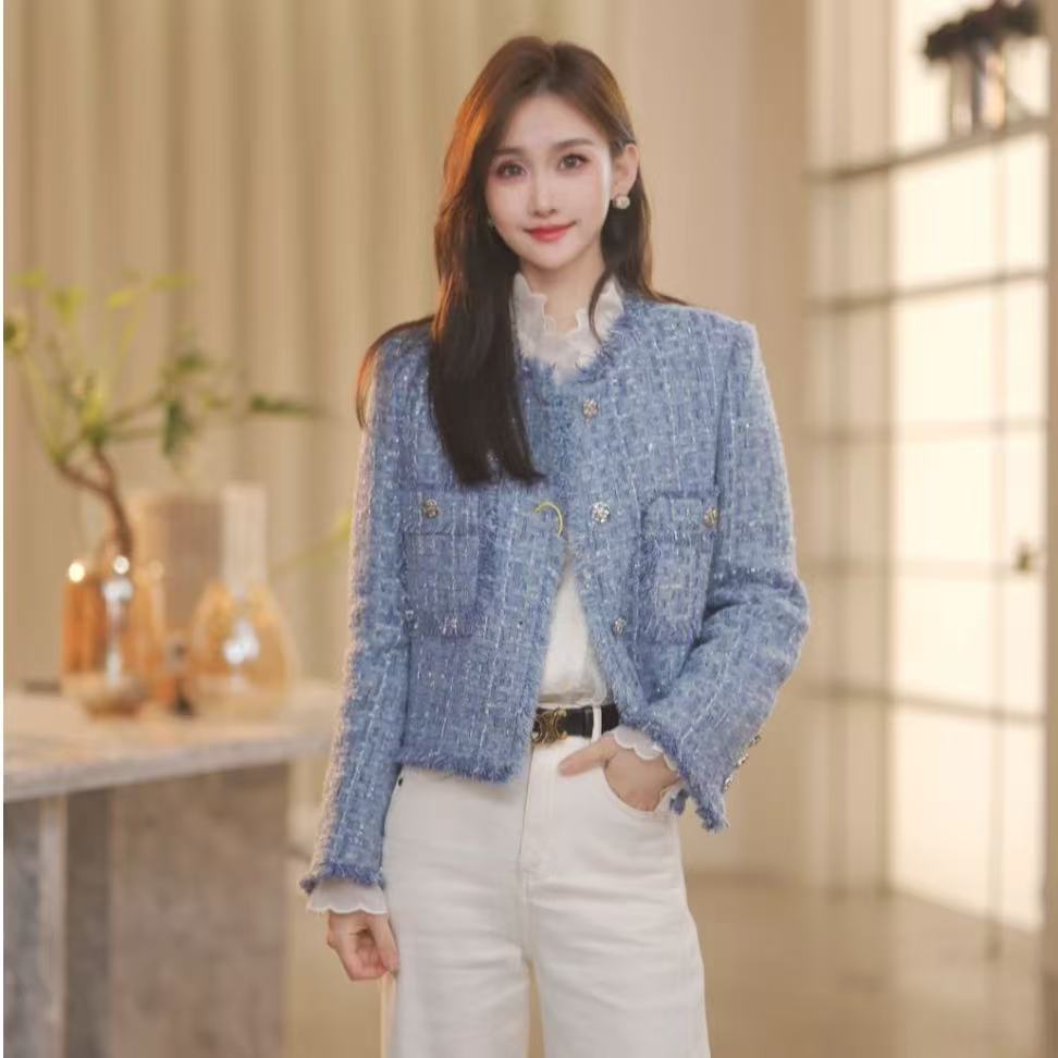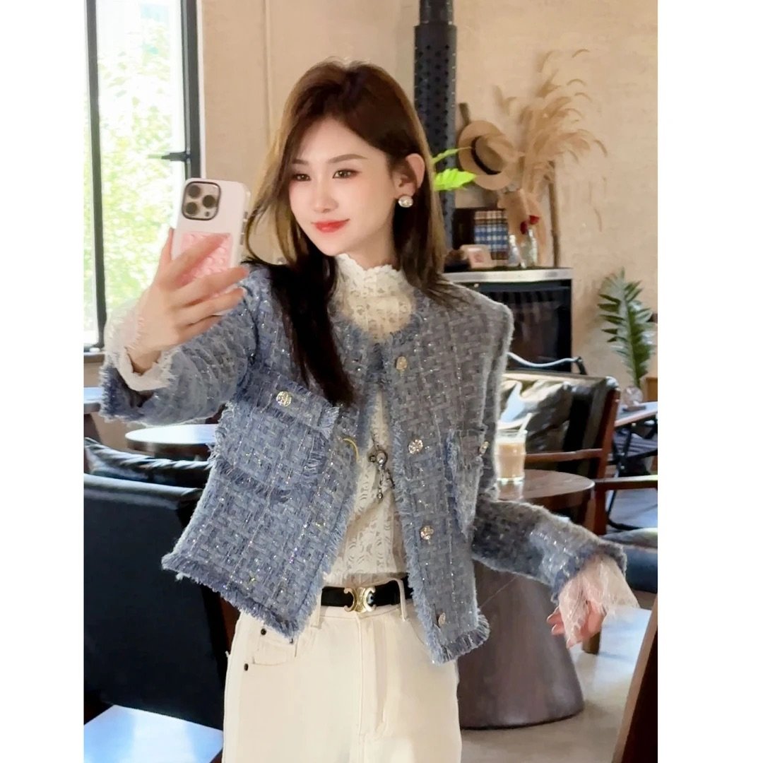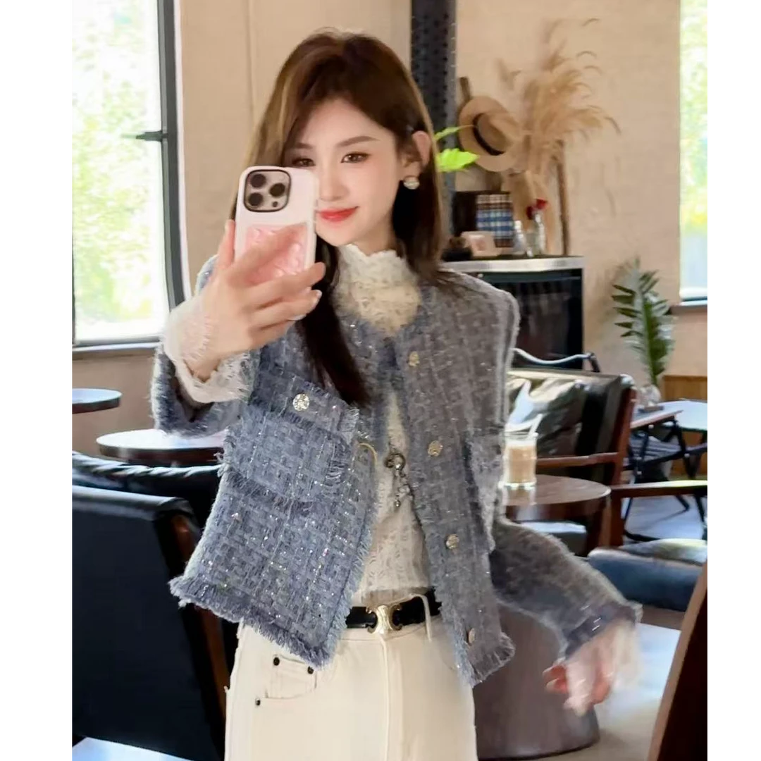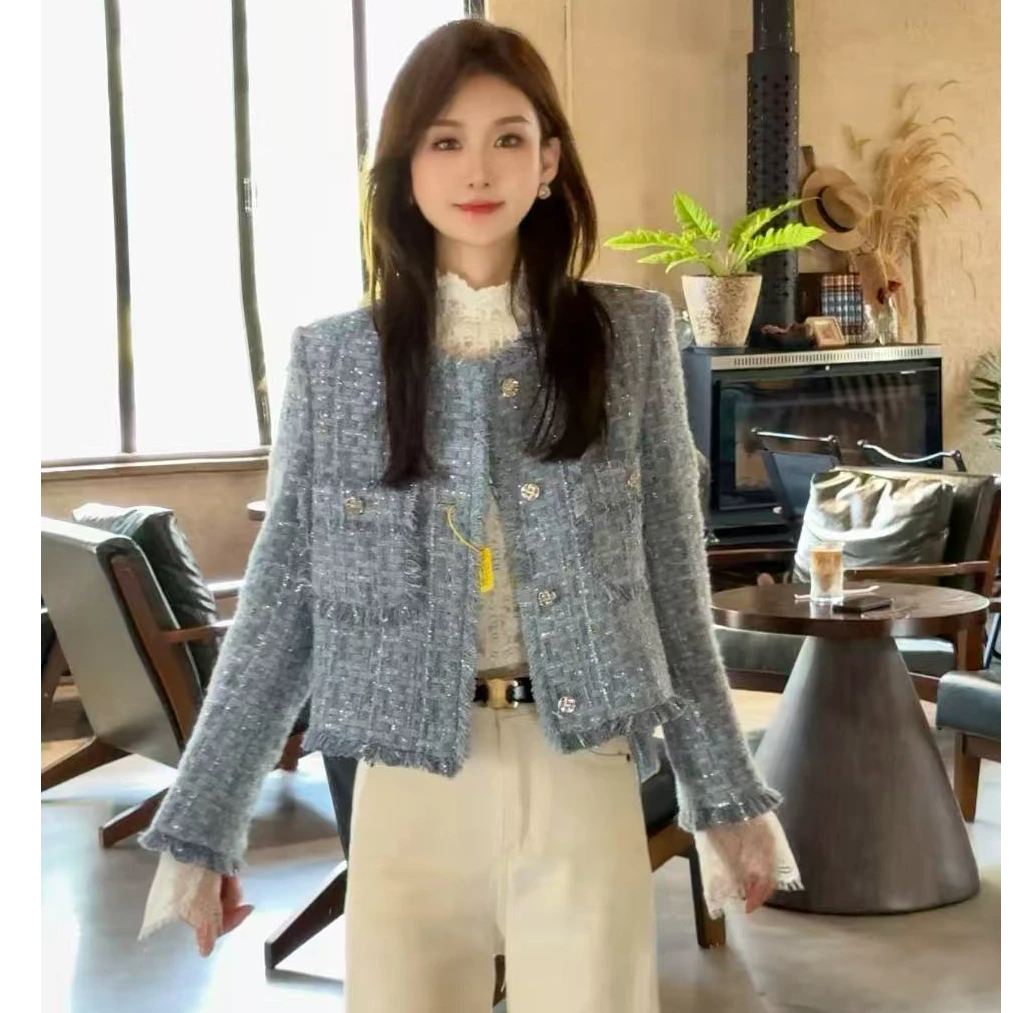 shaw eleven2025 년 가을 얇은 스팽글 긴팔 작은 샤넬 스타일 여성 의류