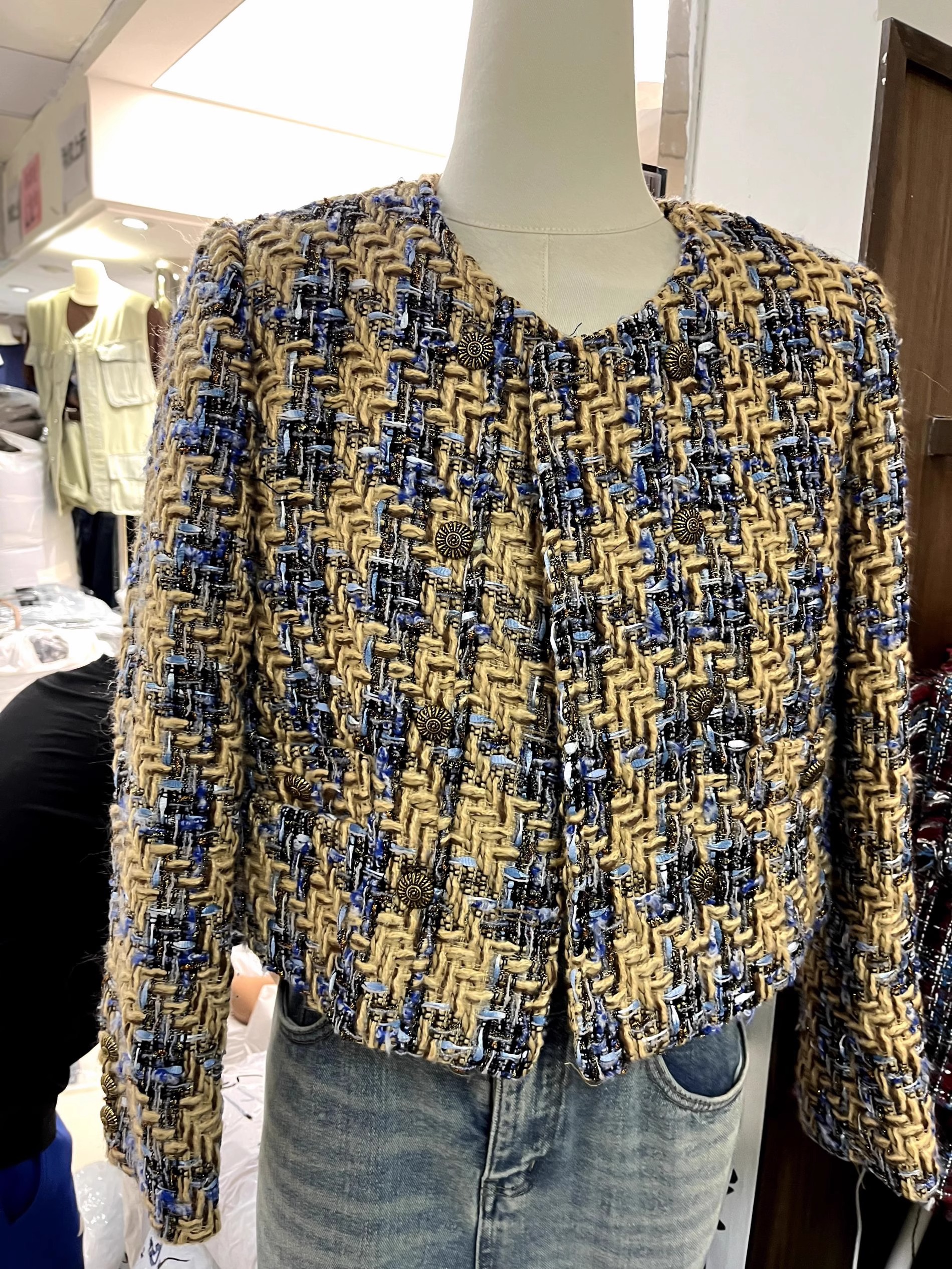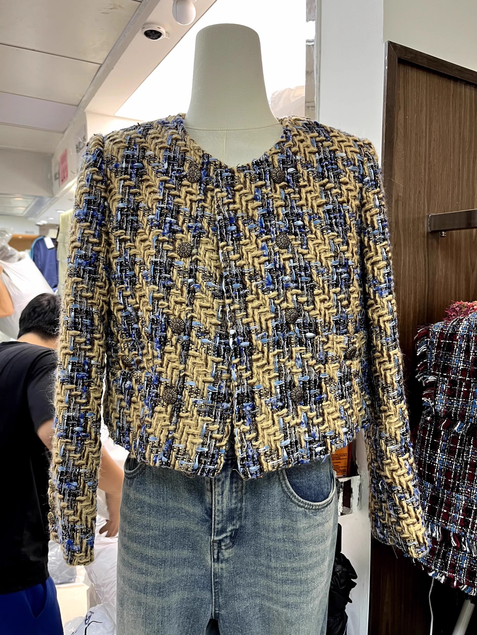 프랑스식 레트로 품격 고급 센스 라운드 넥 이중 버튼 루즈핏 작은 샤넬 스타일