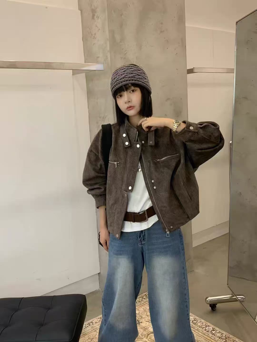 개체 매장 2025 가을 겨울 새로운 유럽 상품 한국 스타일 스탠드 칼라 쇼트 스타일 워크웨어 재킷