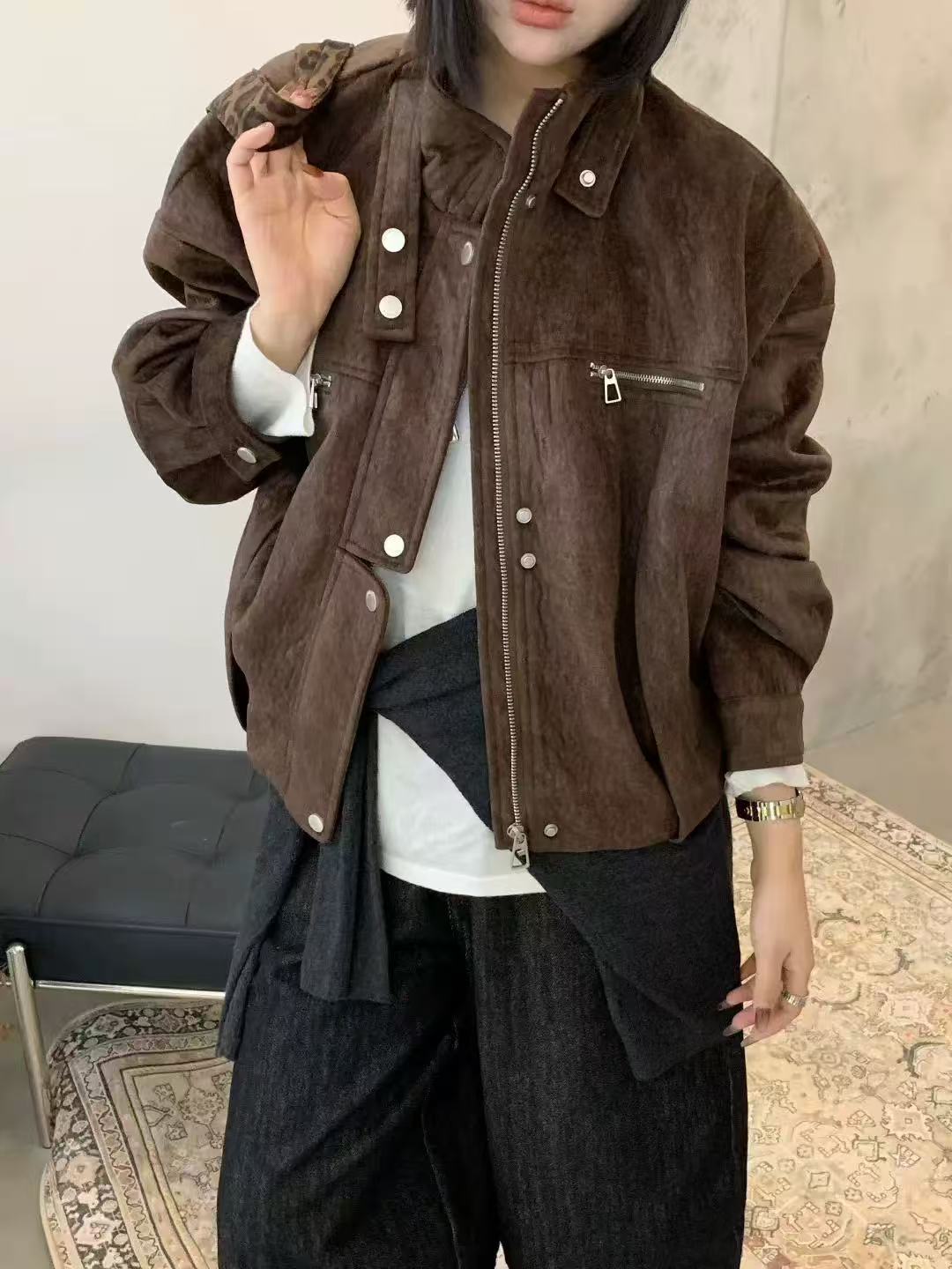 스웨이드 재킷 여성 워크웨어 재킷