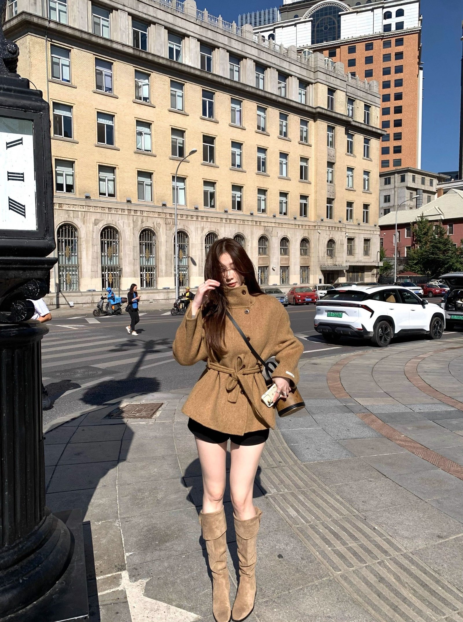 커피 색상 스웨이드 원단 워크웨어 여성 코트 몸매 가꾸기 작은 키 고급 센스 재킷