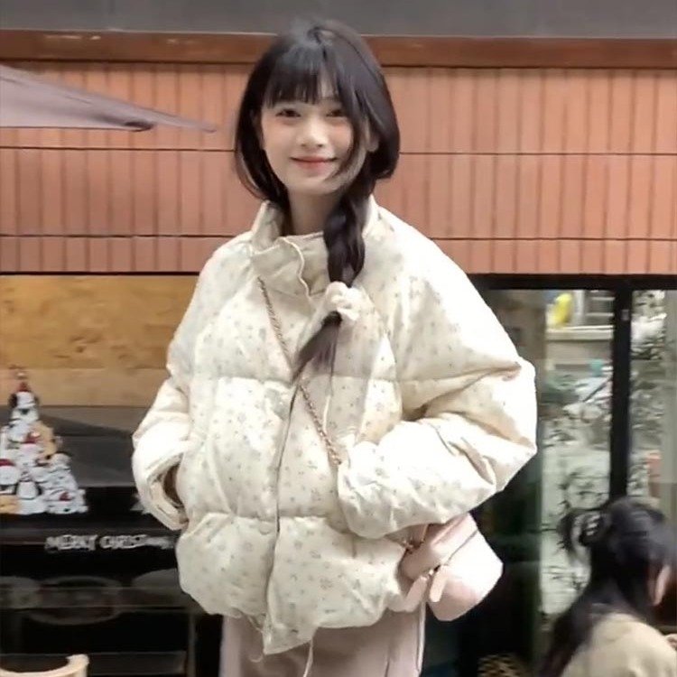 스트라이프 루즈핏 면화 의류 여성 겨울 2025 후드 쇼트 스타일 재킷