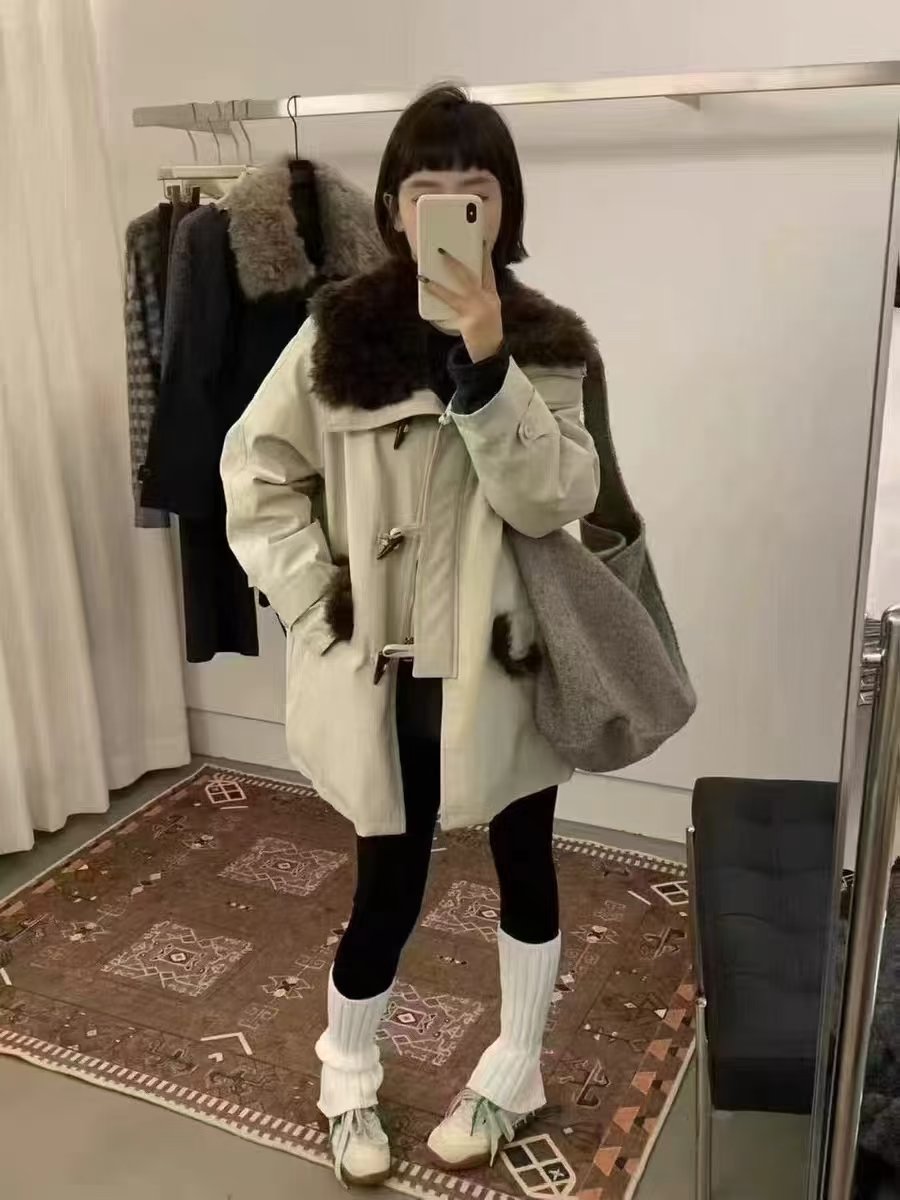 한국 뉴스타일 패션 루즈핏 슬림 중간 길이 Parker 다운 재킷