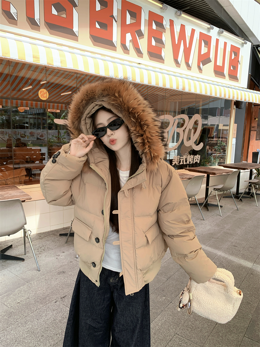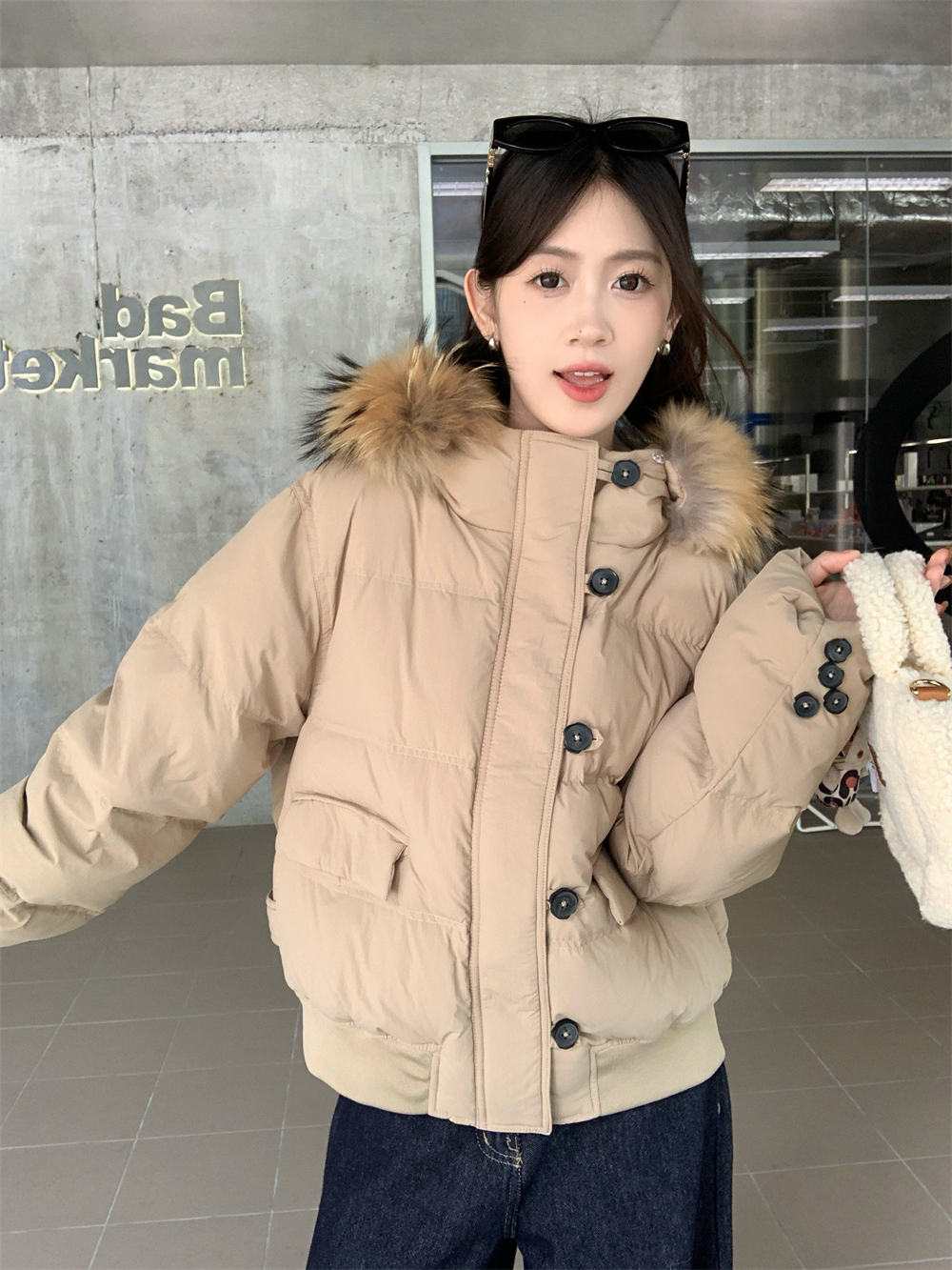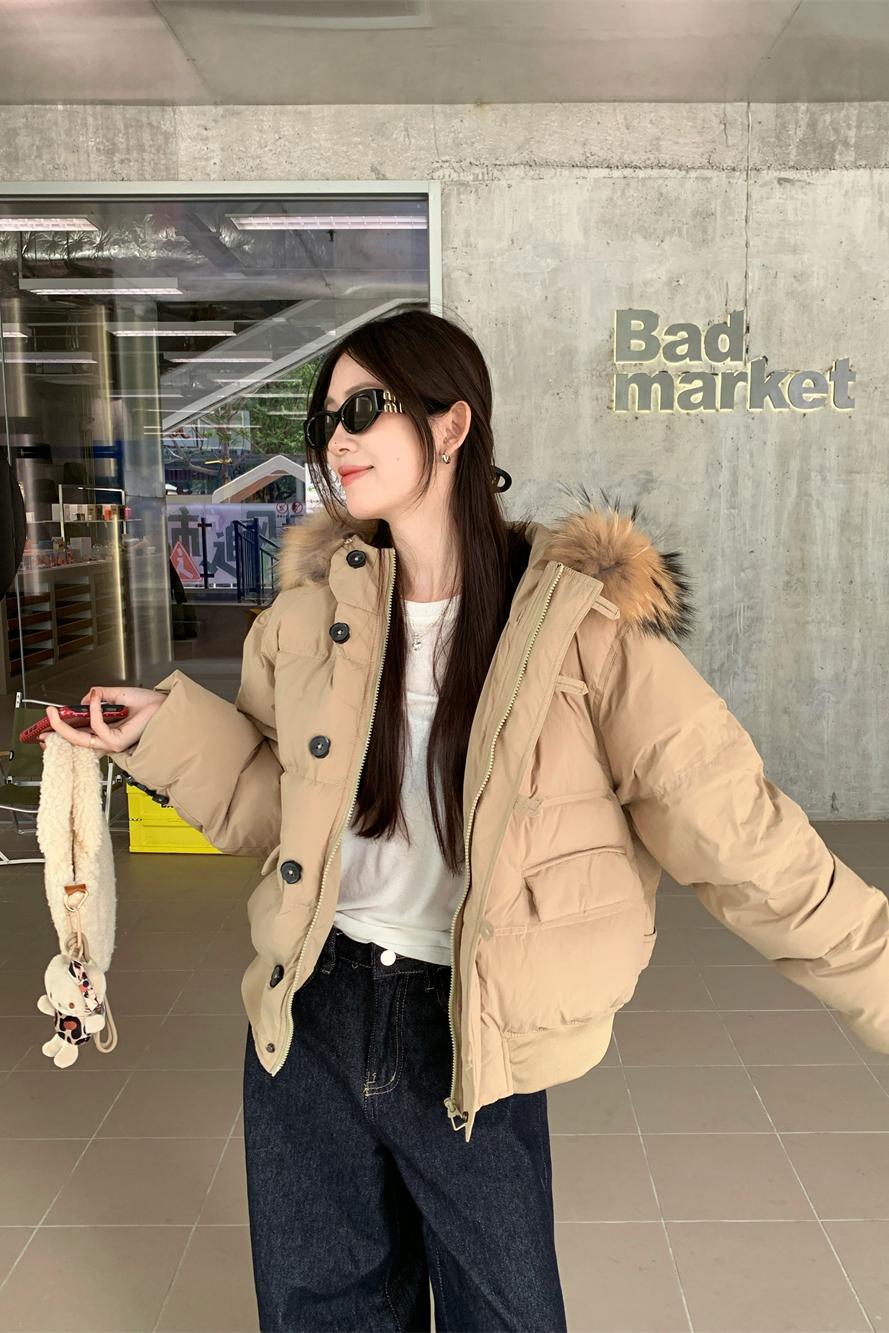 모피 칼라 숏패딩 단락 목화 두꺼운 웰론 의류