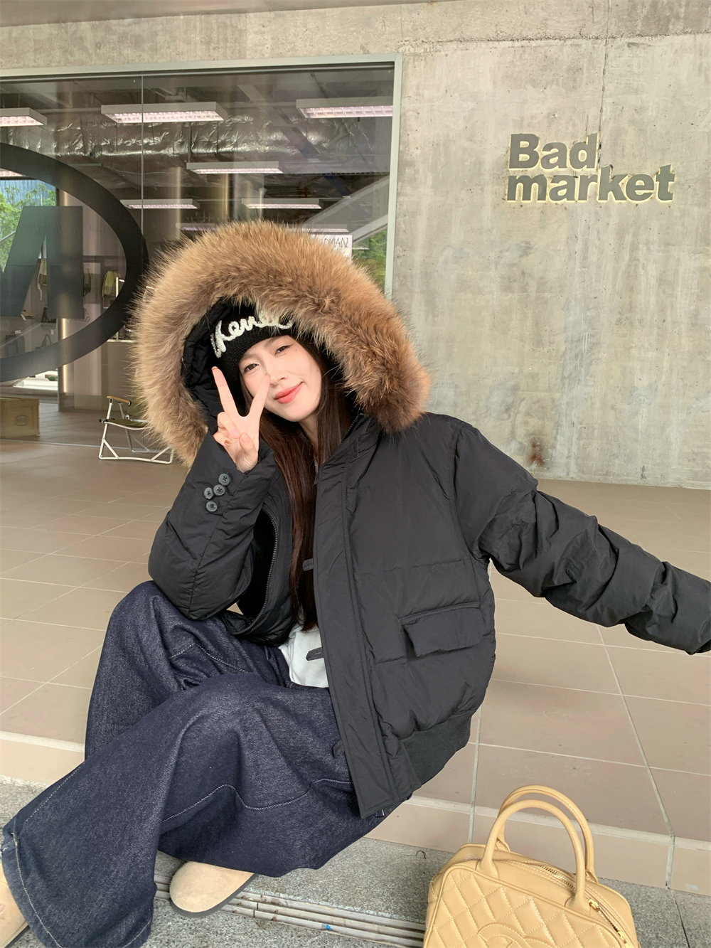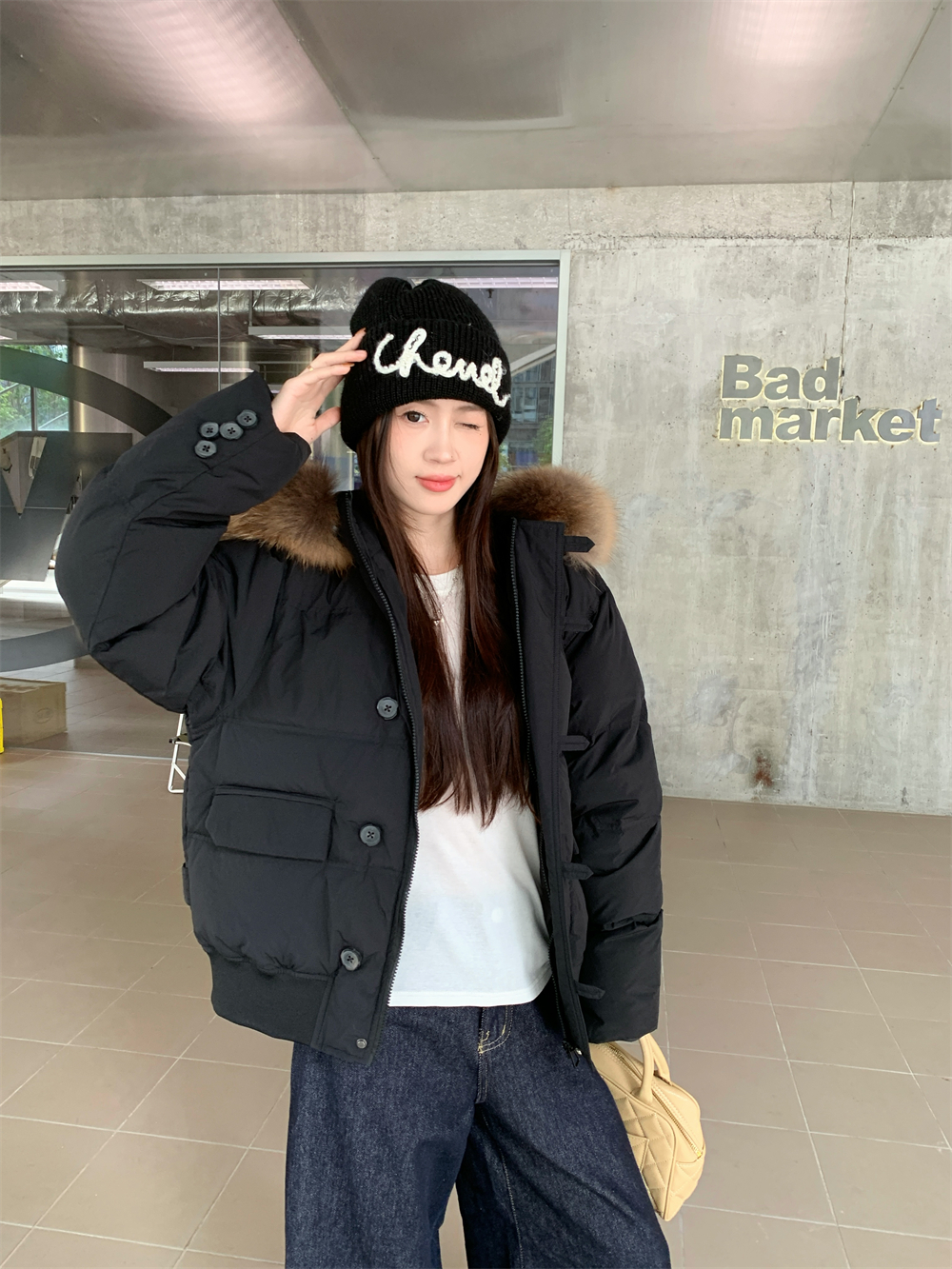 모피 칼라 숏패딩