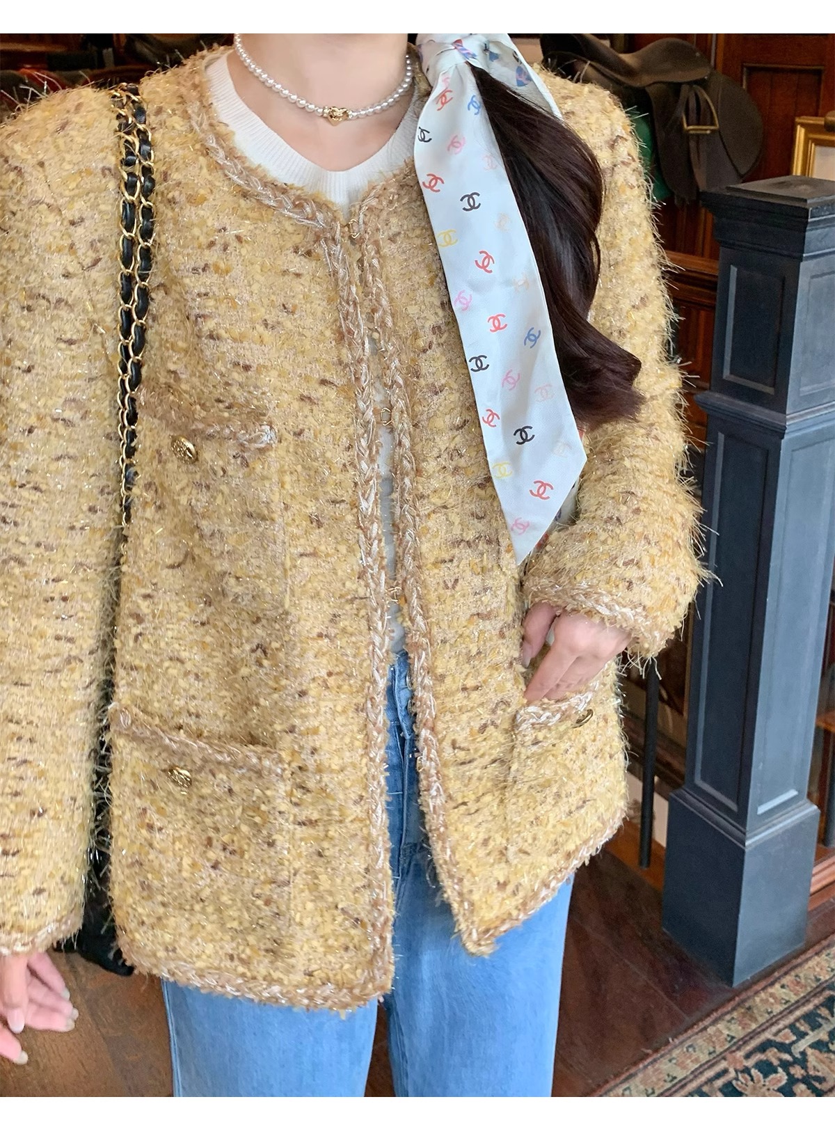 샤넬 스타일 여성 코트 2025 뉴 오리털 자켓