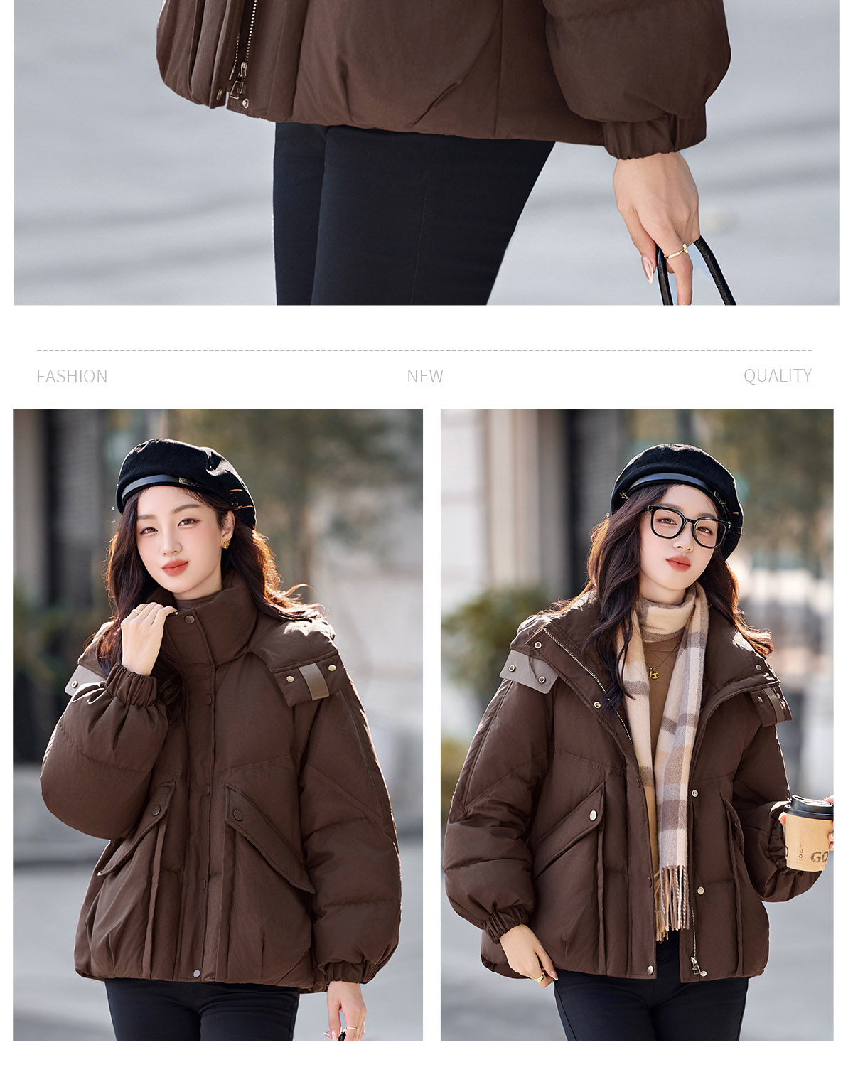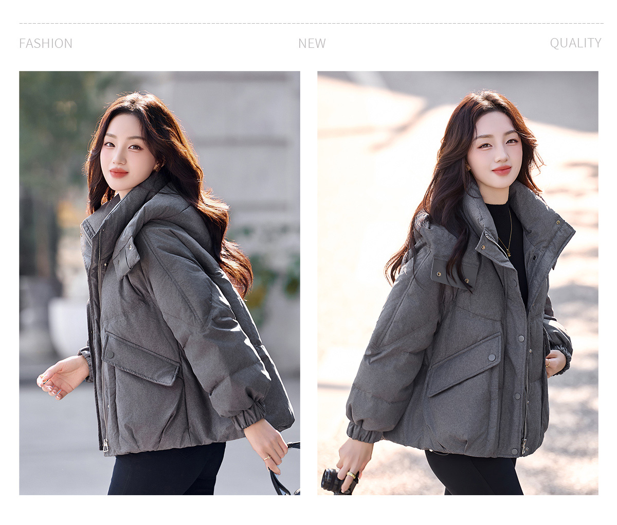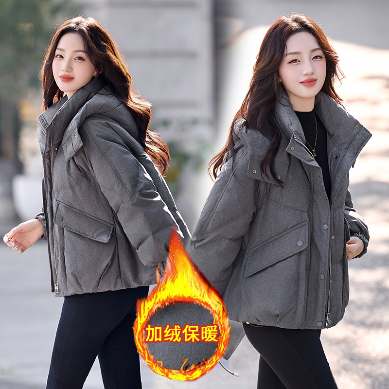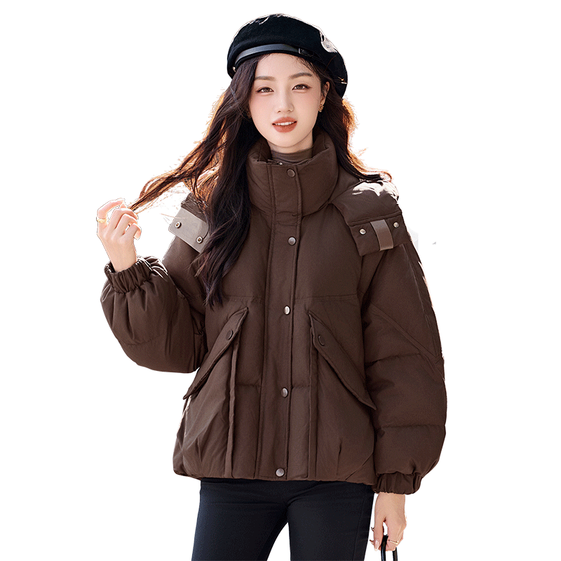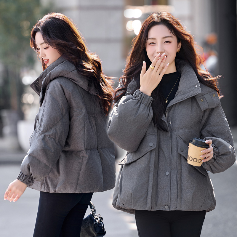 패션 캐주얼 후드 숏 스타일 다운 재킷 여성 2025 보온 화이트 구스다운 재킷