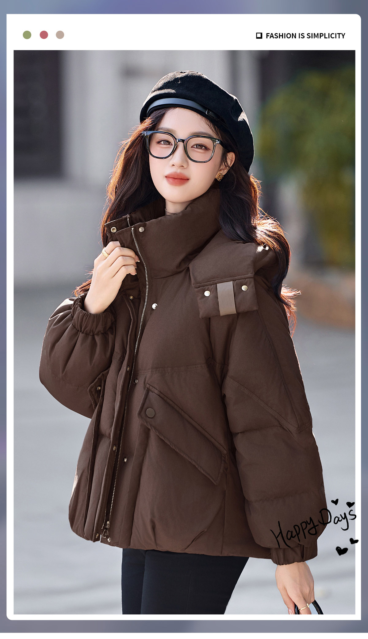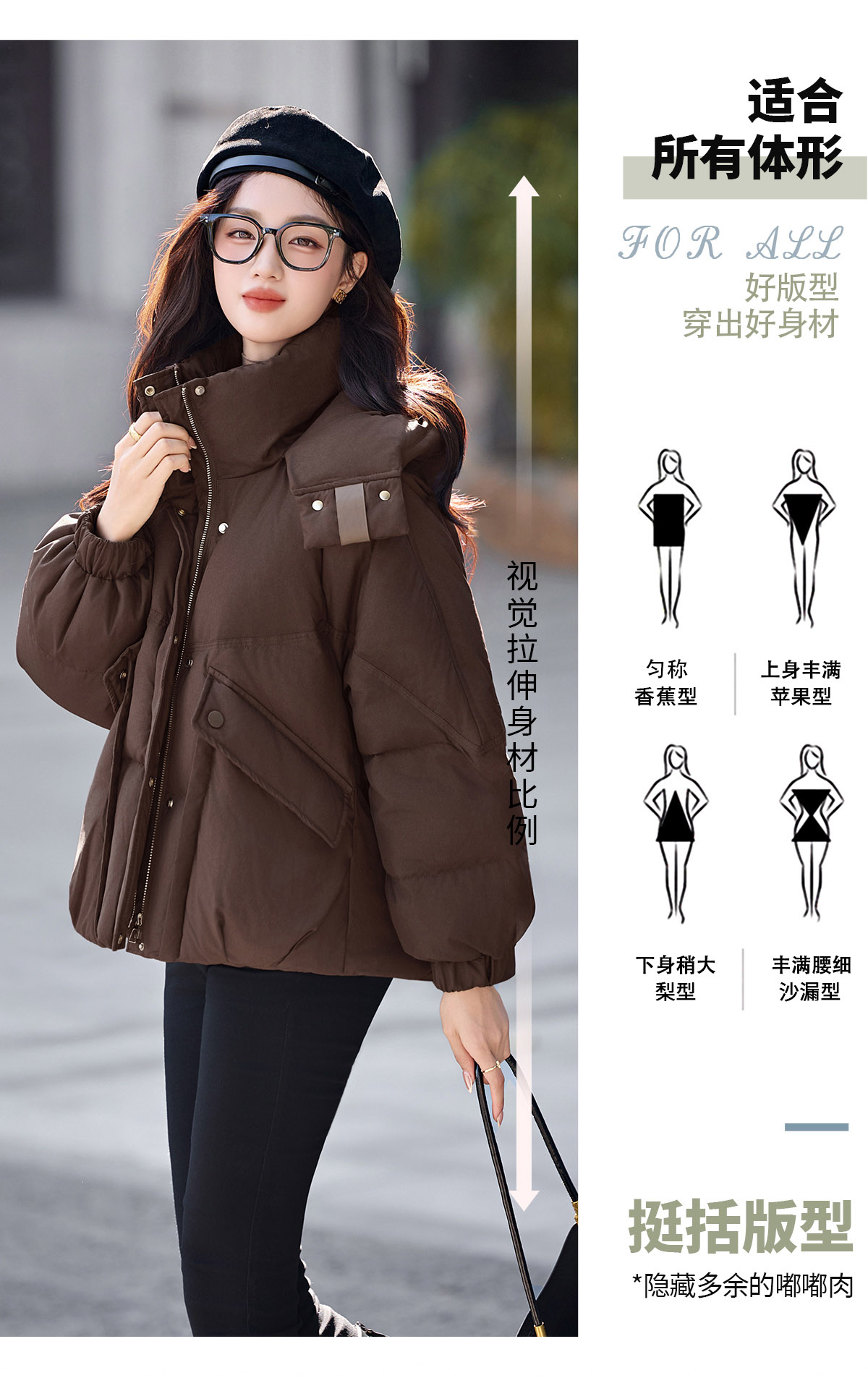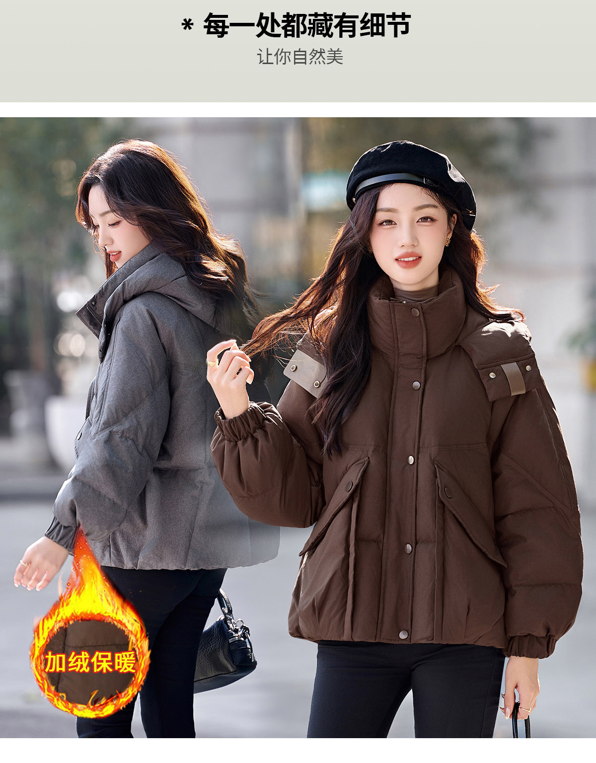 패션 캐주얼 후드 숏 스타일 다운 재킷 여성 2025 보온 화이트 구스다운 재킷