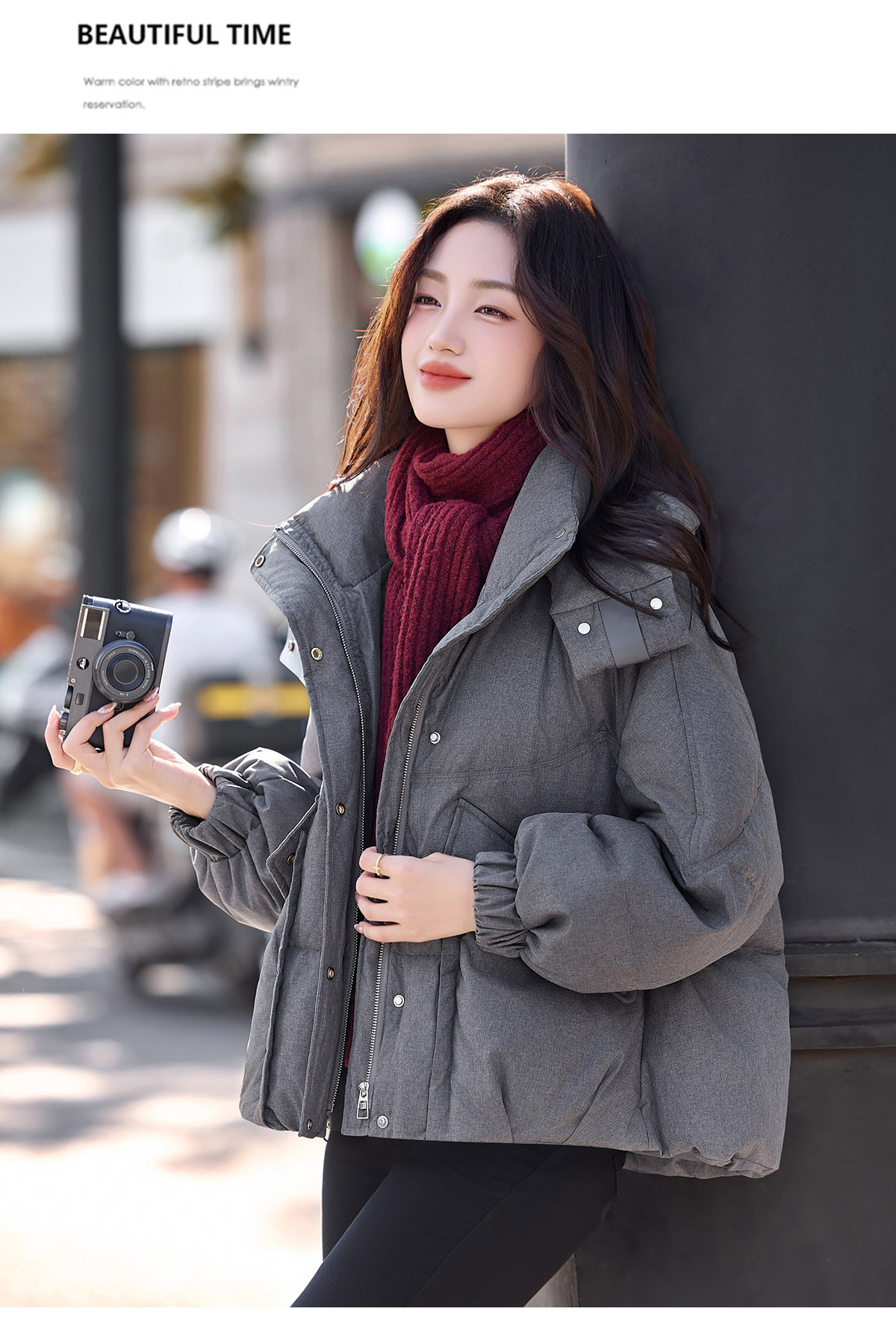 한국 스타일 숏패딩 스탠드 칼라 다운 재킷 루즈핏 보온 재킷