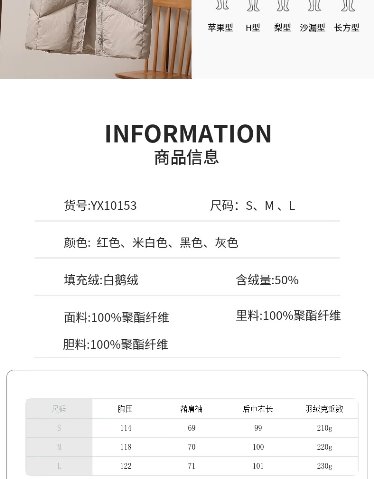 | 색상 | 블랙 (녹색 모피 칼라)|레드 (녹색 모피 칼라)|라이트 그레이 (환경 보호 모피 칼라)|아이보리 (환경 보호 모피 칼라)|블랙 (진짜 너구리 모피 칼라)|레드 (진짜 너구리 모피 칼라)|라이트 그레이 (진짜 너구… |