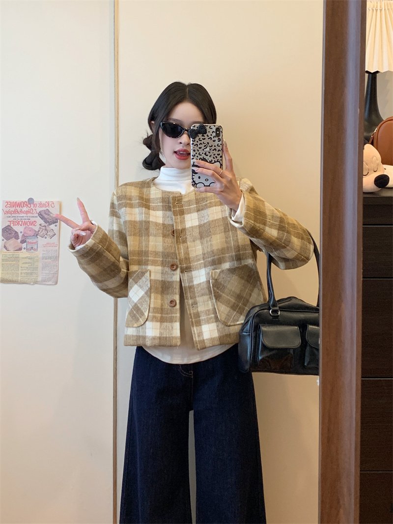 옐로우 체크 무늬 재킷