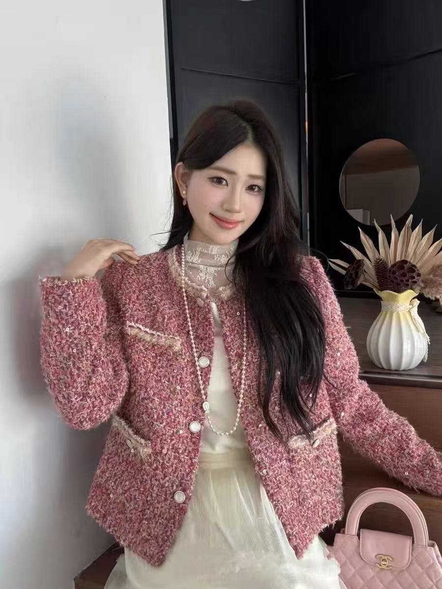 샤넬 스타일 트위드 다운 재킷 화이트 구스다운 짧은 외투