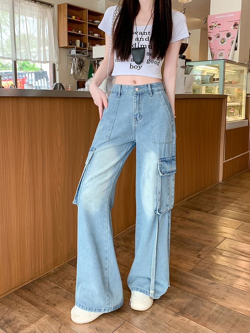 화이트 아메리칸 워싱 여성 하이웨이스트 루즈핏 청바지