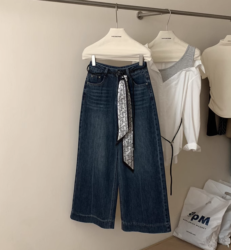 한국 스타일 미니멀리즘 루즈핏 다용도 와이드 레그 팬츠 청바지