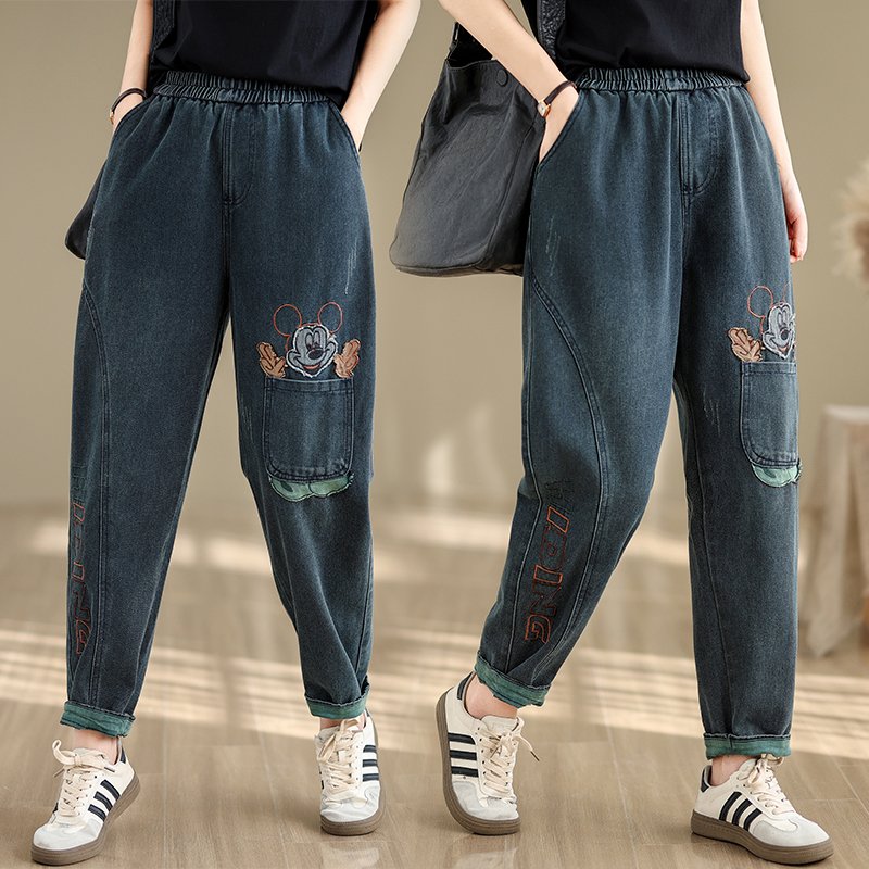 느슨한 높은 허리 신축성있는 허리 큰 사이즈 패치 자수 할란 카우보이 청바지