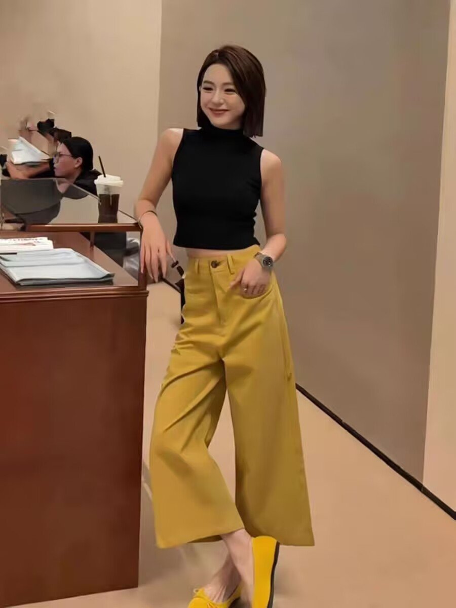 캐주얼 바지 여성 여름 2025 새로운 올해 인기 하이웨이스트 루즈핏 스트레이트 와이드 레그 팬츠