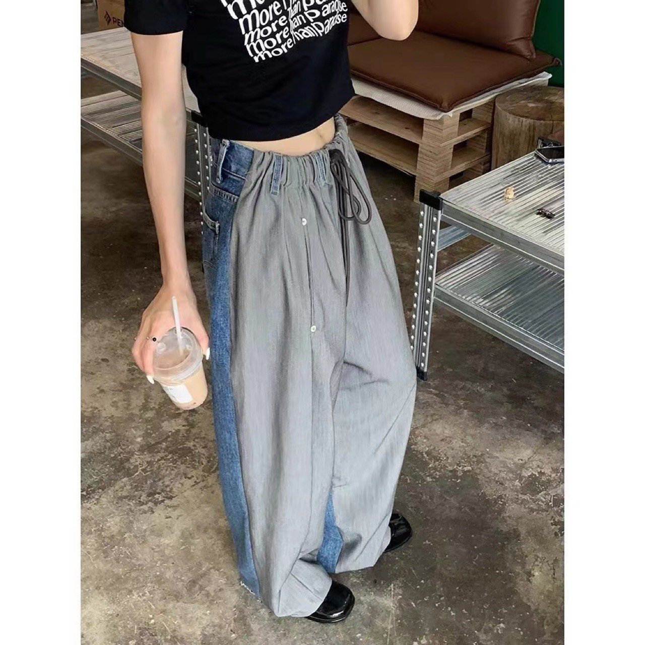 여성 의류 바지 높은 허리 넓은 다리 슬림 와일드 도핑 프랑스OEM 스트레이트 청바지