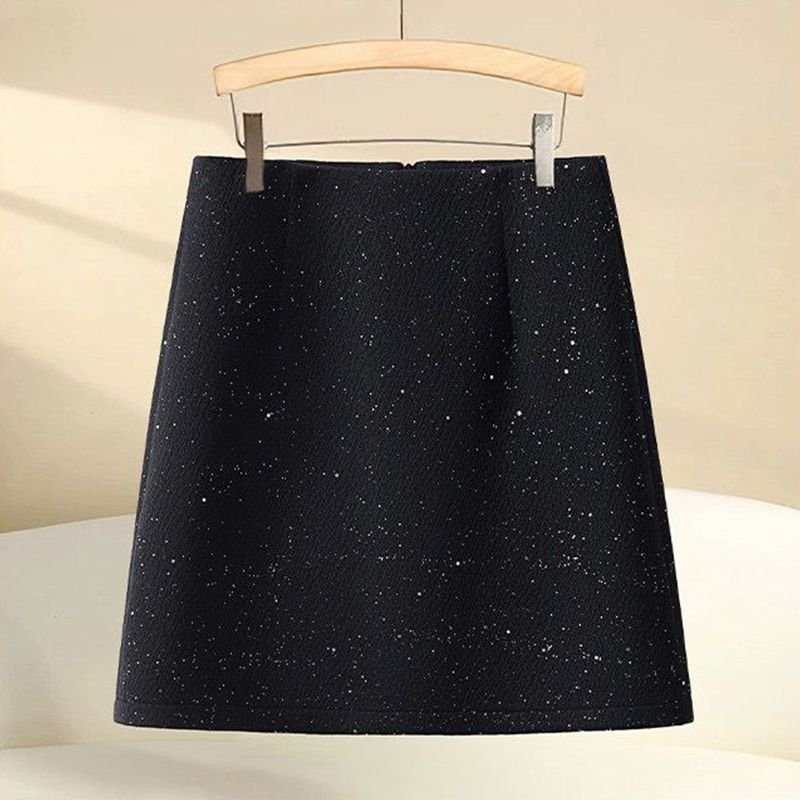 2025 겨울 모직 스팽글 하이웨이스트 반바지 빅 사이즈 지방 mm 외출용 모직 핫걸 와이드 레그 팬츠