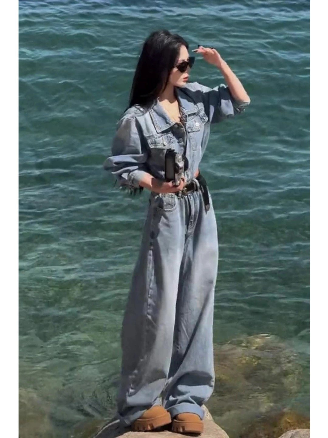 아메리칸 레트로 워싱 데님 점프 슈트 2025 루즈핏 슬림 다리 길이 올인원 의류