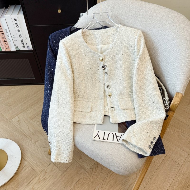 라운드 넥 작은 샤넬 스타일 짧은 외투 가을 새로운 품격 슬림해 보이는 상체