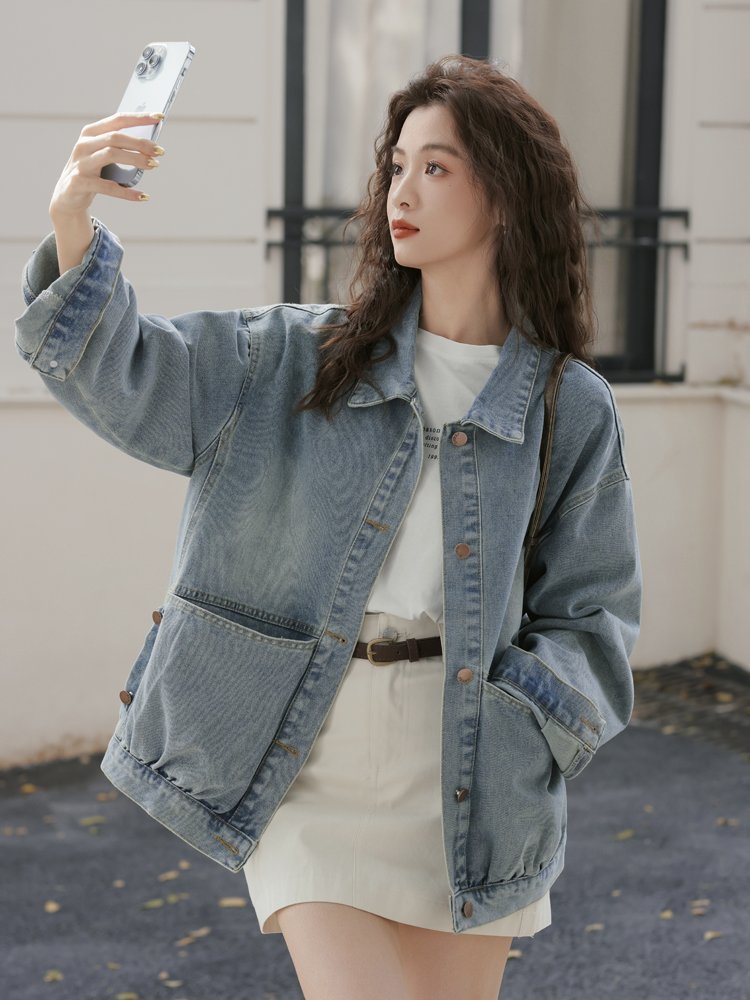한국 스타일 루즈핏 캐주얼 데님 여성 코트 재킷