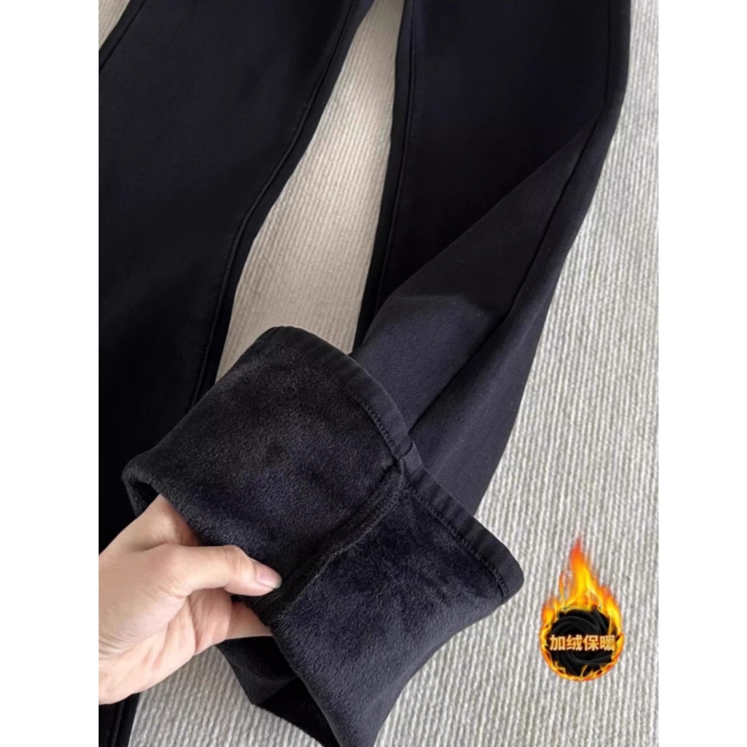 두꺼운 플러시 하이웨이스트 부츠컷 청바지