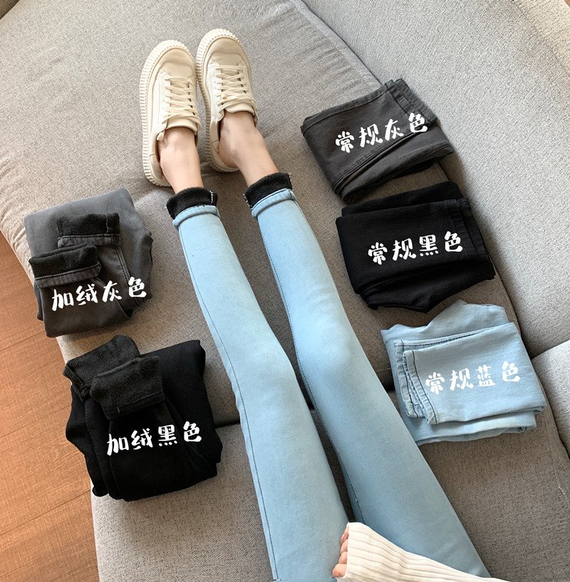 탄력성 리프트 엉덩이 플러스 벨벳 청바지 여자 높은 허리 와일드 슬림 피트 슬림