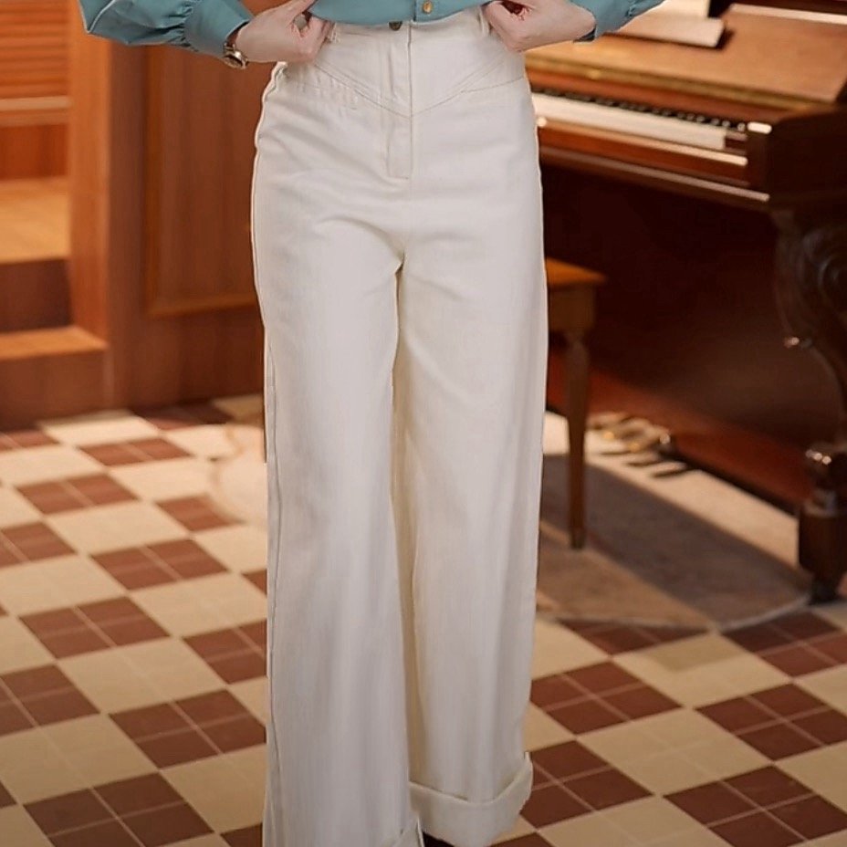 2025 뉴 빅 사이즈 슬림해 보이는 하이웨이스트 스트레이트 와이드 레그 팬츠 겨울 청바지
